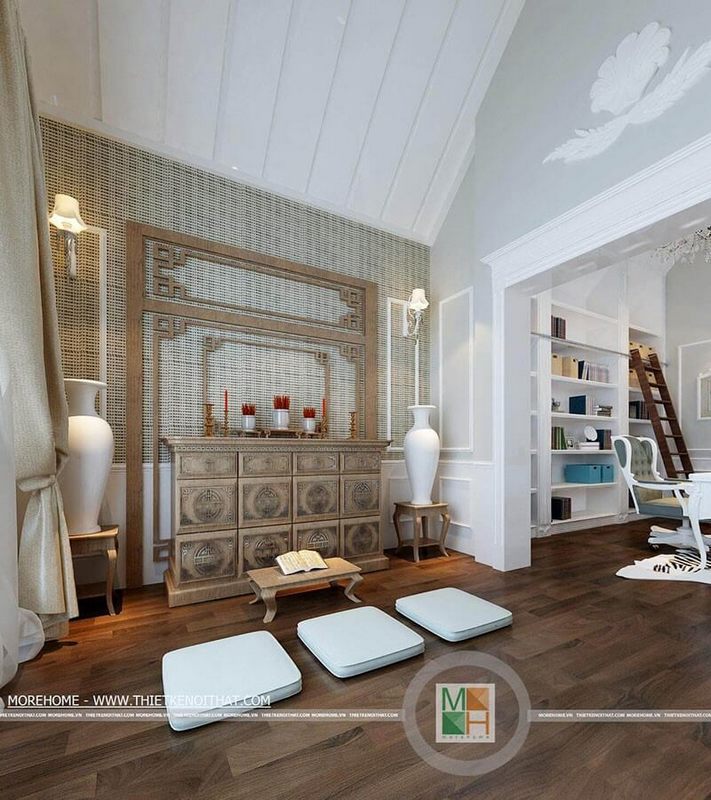Phòng thờ nơi thờ cúng gia tiên nên các gia đình hay lựa chọn đặt tại nơi riêng tư, an tĩnh nhất trong nhà vì thế đặt phòng thờ trên tầng tum là một ý tưởng tốt, phòng thờ không yêu cầu cao về diện tích dù tầng tum có nhỏ một chút cũng không sao