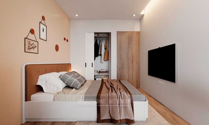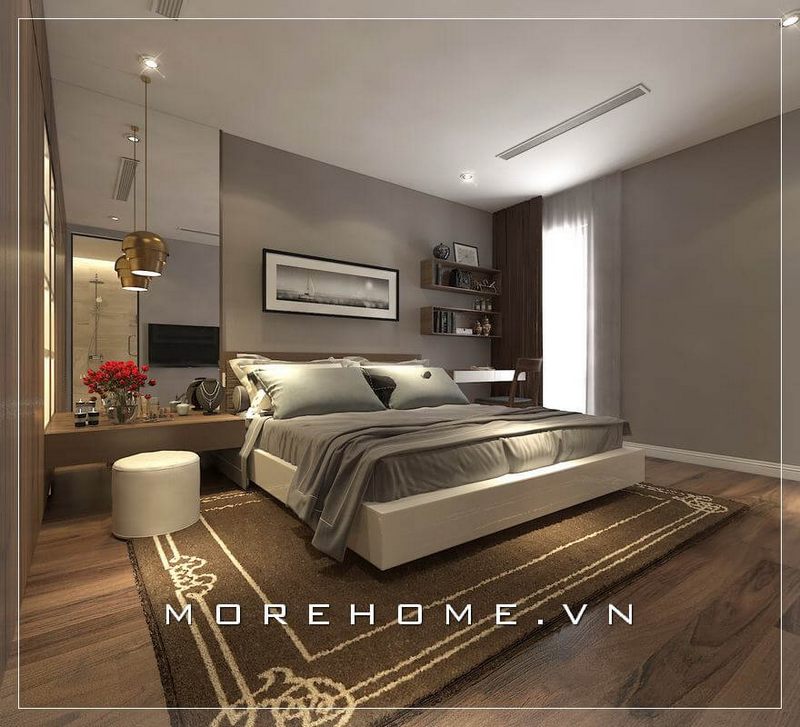 Lựa chọn chiếc giường không cầu kì đơn giản nhẹ nhàng cũng giúp cho căn phòng tinh tế hiện đại.