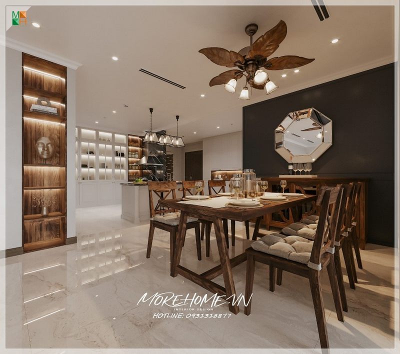 Thiết kế phòng ăn liền bếp tạo sự gần gũi ấm cúng không gian mở rộng thoải mái dễ chịu và thẩm mỹ mang lại cũng cao.