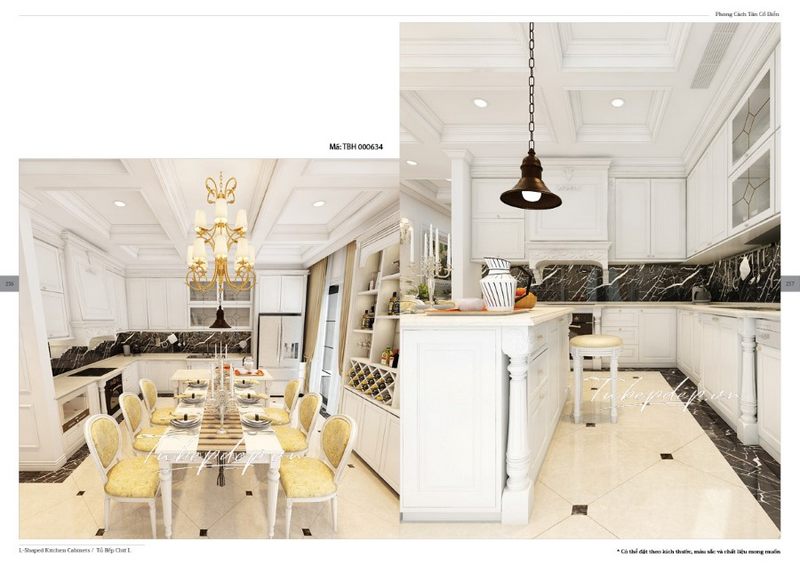 Thiết kế nội thất phòng ăn liền bếp tân cổ điển sang trọng cho nhà biệt thự