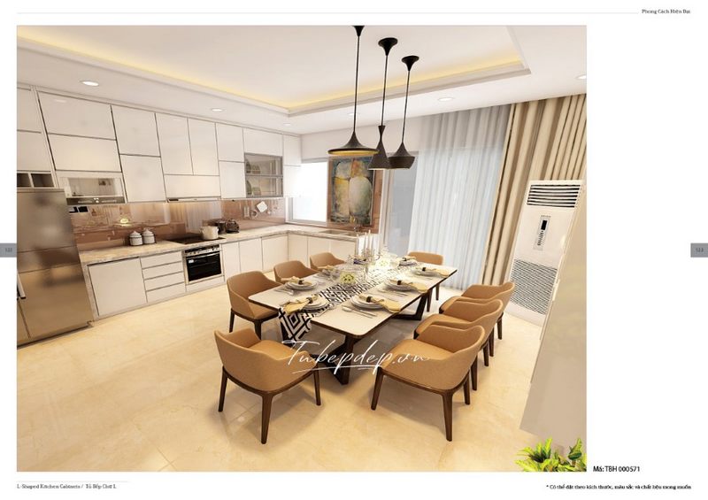 Thiết kế nội thất phòng ăn liền bếp hiện đại cho nhà chung cư nhà phố, biệt thự