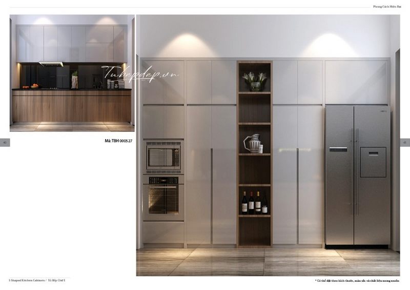 Tách biệt không gian bếp với các không gian khác của ngôi nhà, phòng bếp thiết kế thời thượng kiểu song song với hệ thống tủ bếp hiện đại