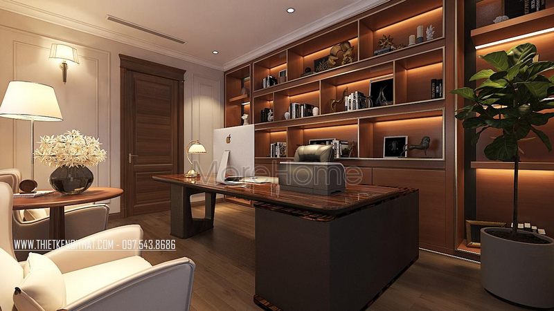 Mẫu cửa gỗ tân cổ điển với gam màu nâu tinh tế kết hợp với nội thất khác góp phần tạo nên sự liên kết giữa các phần trong không gian căn phòng.